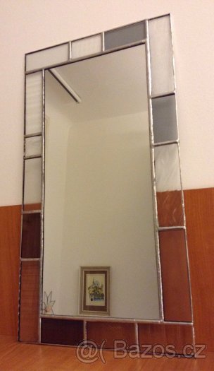 Prodám nové ručně vyrobené zrcadlo z vitrážového skla s úchytem na zavěšení na zeď z dílny ArnaDesign.comOriginální dekorace do bytu, obchodu, kavárny, restaurace, beauty salonu či kadeřnictví, ale i kanceláře. Může být i krásným dárkem na celý život.Strany jsou vyrobené z čirého skla o tloušťce 5 mm technikou Tiffany, vše je pospojované cínem ve stříbrné barvě a na zadní straně je zrcadlo opatřeno úchytem, aby šlo pověsit na zeď. Rozměry: 53,5 cm (výška), 29,2 cm (šířka).Cena: 890 Kč.Předání možné v Praze při platbě v hotovosti, za příplatek dovezu kdekoli po Praze.